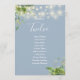 These elegant botanical greenery floral string lights wedding table numbers can be personalised with your guests' seating plan set in chic typography on a dusty blue background. The cards are printed on the front and back (double-sided). Designed by Thisisnotme©