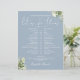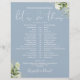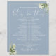 This stylish dusty blue greenery wedding schedule-timeline can be personalised with your wedding details in chic typography. Designed by Thisisnotme©