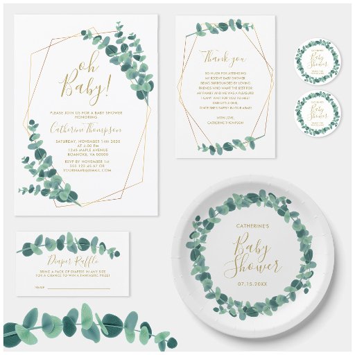 Elevate your neutral-themed baby shower with our Eucalyptus Baby Shower Collection! Featuring delicate eucalyptus leaves, this serene motif sets a tranquil tone for your celebration. From invitations to favours, adorn your event with natural elegance for an unforgettable gathering.