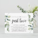 Modern Rustic Greenery Eucalyptus,, Black Script themed invitation card (with card title: Nothing fancy, just love). It is perfect for your wedding elopement reception / post wedding celebration party. Add your details in matching black font / lettering.