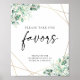 Greenery Eucalyptus Geometric Wedding Favours Sign Poster. Features watercolor eucalyptus leaves and a gold geometric frame.