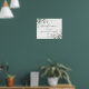 This design features a watercolor illustration of greenery foliage and eucalyptus leaves with greenish and golden effect confetti.