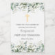 Celebrate your child's First Holy Communion with our elegant and personalised First Holy Communion mini olive oil favour labels. These beautiful labels feature a stunning gold-coloured crucifix and delicate eucalyptus leaves on a crisp white background, creating a classic and timeless look that will impress your guests.