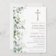 Looking for the perfect way to invite your family and friends to your child's First Holy Communion? Look no further than our customisable First Holy Communion invitation! Featuring an ornate gold-tone crucifix and a lush eucalyptus greenery border on a white background, this invitation is sure to impress your guests and set the tone for a beautiful and meaningful celebration.