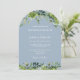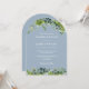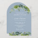 Greenery Floral Arch Dusty Blue Monogram Wedding Invitation