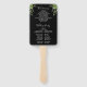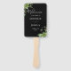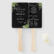 This elegant modern greenery floral wedding program hand fan can be personalised with your information in chic typography on a black background. Designed by Thisisnotme©