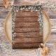 A cascade of beautiful floral greenery frames your special wedding celebration details set in elegant typography on a rustic wood background. Designed by Thisisnotme©