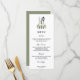 Beautiful menu card with vintage cutlery adorned with greenery and ivory florals and a forest green reverse side (you can delete this if you would prefer it white). Easy to edit or delete the available text fields to personalize the information with your own, to create a professional and custom menu. Matching items available, please visit my shop now to see the full collection.