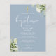 Greenery Floral Dusty Blue Baptism Invitation Postcard