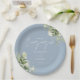 Greenery Floral Dusty Blue Engagement Party Paper Plate