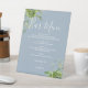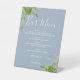 Greenery Floral Dusty Blue Wedding Bar Menu Pedestal Sign