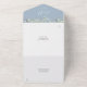 All-in-one wedding invitation featuring floral greenery and elegant typography on a dusty blue background. The invitation includes a perforated RSVP card that can be individually addressed or left blank for you to handwrite your guest's address details. Designed by Thisisnotme©