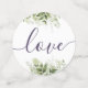 Elegant greenery floral purple wedding table confetti personalized with signature style names, monogram initials, special wedding date and message. Designed by Thisisnotme©