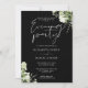 This elegant black and white botanical greenery floral wedding evening party invitation can be personalised with your information in chic typography and your photo on the reverse. Designed by Thisisnotme©
