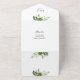 This all-in-one wedding invitation features botanical greenery falling across elegant typography. The invitation includes a perforated RSVP card featuring a QR code. Designed by Thisisnotme©