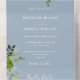 Greenery Floral QR Code Modern Dusty Blue Wedding All In One Invitation