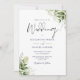 This elegant botanical greenery leaves wedding invitation can be personalised with your information in chic typography with your wedding website details and your QR code on the reverse. Designed by Thisisnotme©