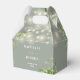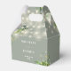 This elegant greenery botanical floral string lights wedding favour box can be personalised with your information in chic typography on a sage. green background. Designed by Thisisnotme©