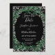These save the date cards feature green watercolor leaves and white florets on a black background. There is a monogram on the back. These invitations are part of a wedding collection which includes other matching wedding products. Please visit the collection pages in our store to see the full range of wedding and bridal products that you can personalise for your wedding.