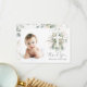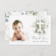 Baby Photo Thank You Baptism/Christening Card. This design features an illustration of green and gold foliage in watercolor style. On the green foliage there is an image of a Cross.