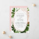 Greenery Botanical and Rose Gold Geometric Watercolor Spring Wedding Invitations on White background - includes beautiful and elegant script typography with modern botanical leaves and greenery for the special Wedding day celebration.