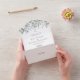 All in one wedding invitation featuring pretty watercolor greenery foliage and elegant modern typography. The invitation includes a perforated RSVP card that can be individually addressed or left blank for you to handwrite your guest's address details. Designed by Thisisnotme©