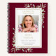 An elegant burgundy and gold personalised botanical watercolor greenery leaves funeral memorial guest book. Designed by Thisisnotme©
