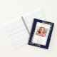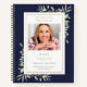 An elegant navy blue and gold personalised watercolor greenery leaves funeral memorial guest book. Designed by Thisisnotme©