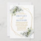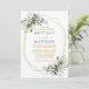 Modern Elegant Watercolor Botanical Greenery Wedding Invitation Card includes eucalyptus leaves, green botanical foliage, dusty blue leaves and other beautiful botanical greenery. Gold Geometric Frame, Dusty Blue and Gold Text
