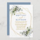 Greenery Geo Frame Wedding Dusty Blue Gold Invitation