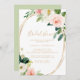 This greenery & gold geometric elegant bridal shower invitation is perfect for a modern wedding shower. The design features lovely white, pink, and blush hand-painted roses and a touch of greenery, adorning gold geometric frames, inspiring artistic beauty.