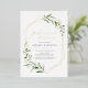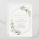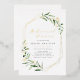 Modern greenery rehearsal dinner invitation featured rustic watercolor botanical foliage greenery and real gold foil leaves and geometric frame, simple and elegant.