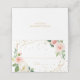 This greenery & gold geometric wedding place card is perfect for a rustic wedding. The design features lovely white, pink, and blush hand-painted roses and a touch of greenery, adorning gold geometric frames, inspiring artistic beauty.
