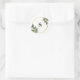 The sticker is made on wonderful paper and had no problem sticking to the bag that I purchased to put it on. I wanted to find a design that would be cute for the bride and groom and this one fit the bill as it has cute "bees" buzzing around and the wedding was taking place in a town called "Bee Cave". The packaging was great and protected the stickers. The website is easy to navigate and there are so many color choices. I had no problem finding a color that the bride was using on everything else selected. The design was adorable and there were many to choose from. You can make the figure as larger or smaller and you can place the photo and writting whereever you want to in the sticker. The printing is fabulous..better than expected.