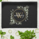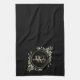 Greenery Gold Monogram Chic Script Black Tea Towel