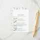 Elevate the allure of your romantic rustic wedding affair with a sophisticated and polished menu card. Embellished with intricate hand-drawn greenery leaf motifs, this beautiful design is enhanced by personalisation, showcasing the names of the bride and groom on the reverse side.