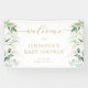 Elegant modern and stylish gender neutral baby shower welcome sign banner featuring watercolor greenery and eucalyptus leaves with gold elements. Perfect for nature botanical baby celebrations.