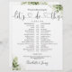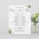 This stylish greenery leaves botanical wedding schedule-timeline can be personalised with your wedding details in chic lettering. Designed by Thisisnotme©