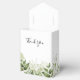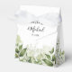 An elegant wedding favour box featuring greenery leaves and chic signature script names and special date set in modern typography. You can personalise with your own thank you message under the lid. A perfect way to say thank you to your guests! Designed by Thisisnotme©