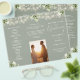 This elegant wedding trifold program features floral greenery and string lights on a sage green background. Designed by Thisisnotme©