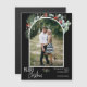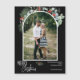 This design features watercolor holly and eucalyptus around an arched picture with a gold foil frame.