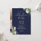 An elegant navy blue, botanical personalized watercolor greenery floral celebration of life photo remembrance invitation. Designed by Thisisnotme©