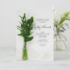 Invite guests to a pre marriage event honoring the Bride and Groom to be with the natural Greenery on White Engagement Party Invitation. This elegant custom outdoor garden party invite features a nature photograph of a vintage glass milk bottle filled with green plant foliage and white satin. Available as a printed invitation for mailing or as a digital download for easy sharing digitally online.