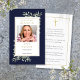 Elegant navy blue and gold photo funeral sympathy memorial prayer cards. You can customise with your chosen prayer if you prefer. Designed by Thisisnotme©