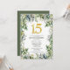 Celebrate your special day with our beautifully designed Quinceañera invitation template. Featuring an elegant gold number "15" and surrounded by lush greenery and delicate foliage, this invitation sets the perfect tone for a memorable quinceañera celebration.
