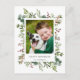 This holiday postcard features painted watercolor red berries, pine branches, eucalyptus and green leaves with the words “Happy Holidays”. Customise this by changing the image with your own photo and text.