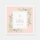 Featuring delicate watercolor leaves on a blush pink background and an elegant silver crucifix, this chic baptism or christening napkin can be personalised with your special event information. Designed by Thisisnotme©