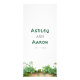 Celebrate your St. Patrick's Day wedding with a touch of elegance and vintage charm with this sbudget Irish wedding menu card. The design showcases a delightful combination of lovely greenery at the bottom and a border adorned with a soft, pale green striped pattern. On the back, you'll find the same captivating border along with the names of the couple beautifully written in a celtic font. While it may not feature the traditional clover design, the lush greenery and the exquisite celtic font used create a truly enchanting St. Patrick's Day wedding menu card that will leave a lasting impression on your guests.