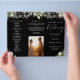 This elegant wedding trifold program features floral greenery and string lights on a black background. Designed by Thisisnotme©