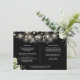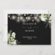 An elegant black and white greenery floral string lights wedding details information enclosure card personalised with your special details set in stylish typography and your names and wedding date on the reverse. Designed by Thisisnotme©